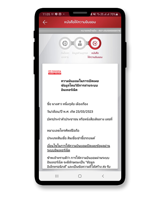 10. ทำแบบข้อมูลเพื่อทราบข้อเท็จจริงเกี่ยวกับลูกค้า (CDD) พร้อมศึกษาข้อมูลเงื่อนไขการยืนยันตัวตนรูปแบบดิจิทัลและข้อมูลความยินยอมในการเปิดเผยข้อมูลเครดิตโดยวิธีการผ่านระบบอินเตอร์เน็ต