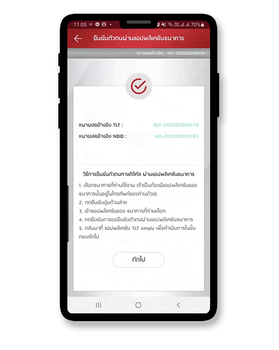 11. เมื่อระบบแสดงหมายเลขอ้างอิง TLTและ NDID กด “
