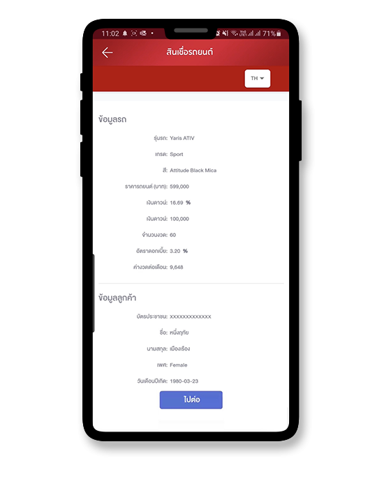 5. ตรวจสอบข้อมูลรถ ค่างวด และข้อมูลลูกค้าจากนั้น กด “