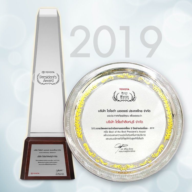 บริษัท โตโยต้าสิงห์บุรี ได้รับรางวัล President Award ปี ค.ศ.2015, 2016, 2017, 2018, 2019 และปี 2020